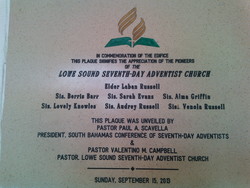 The Lowe Sound S.D.A. Church is the Mother Church in North and Central Andros, under the leadership of Elders Grevian Nixon and Velinda Rolle.